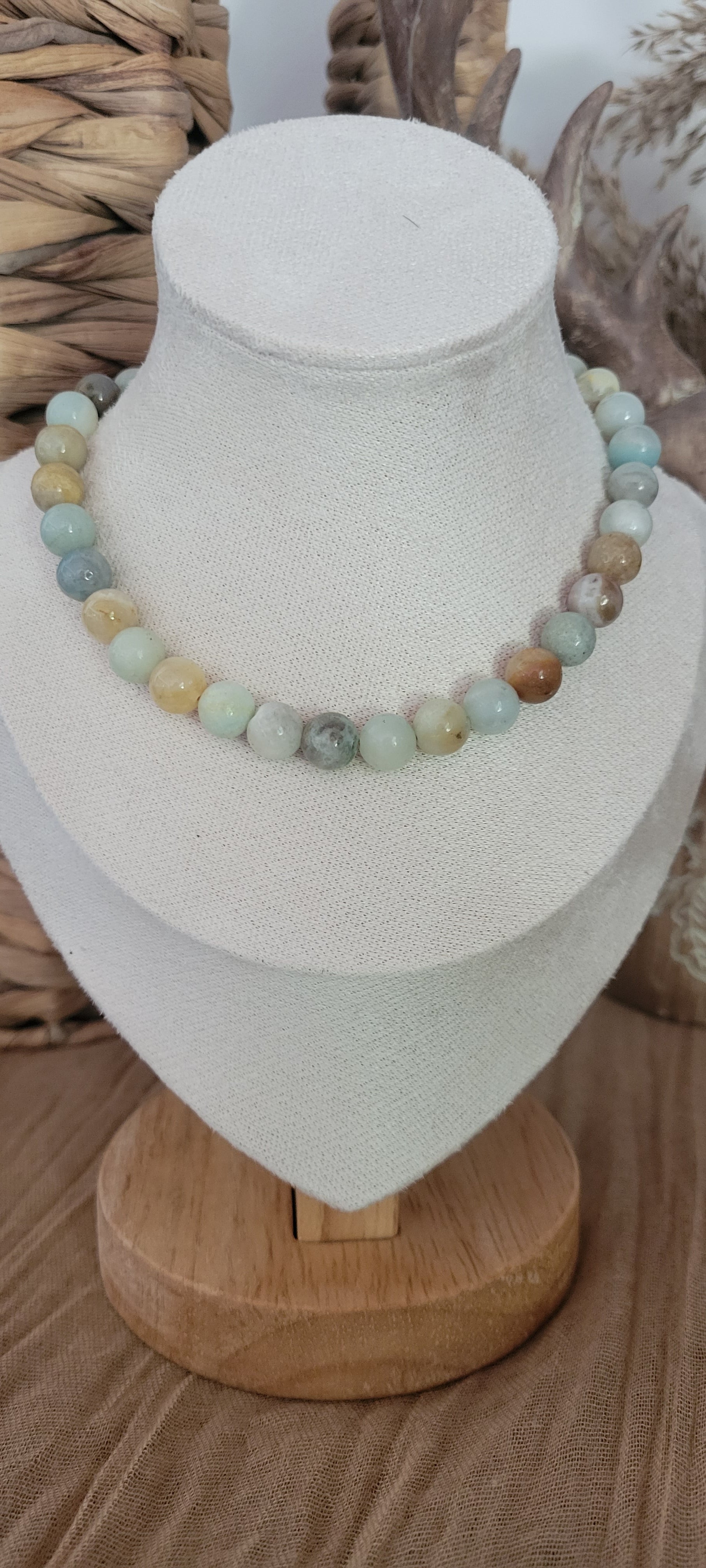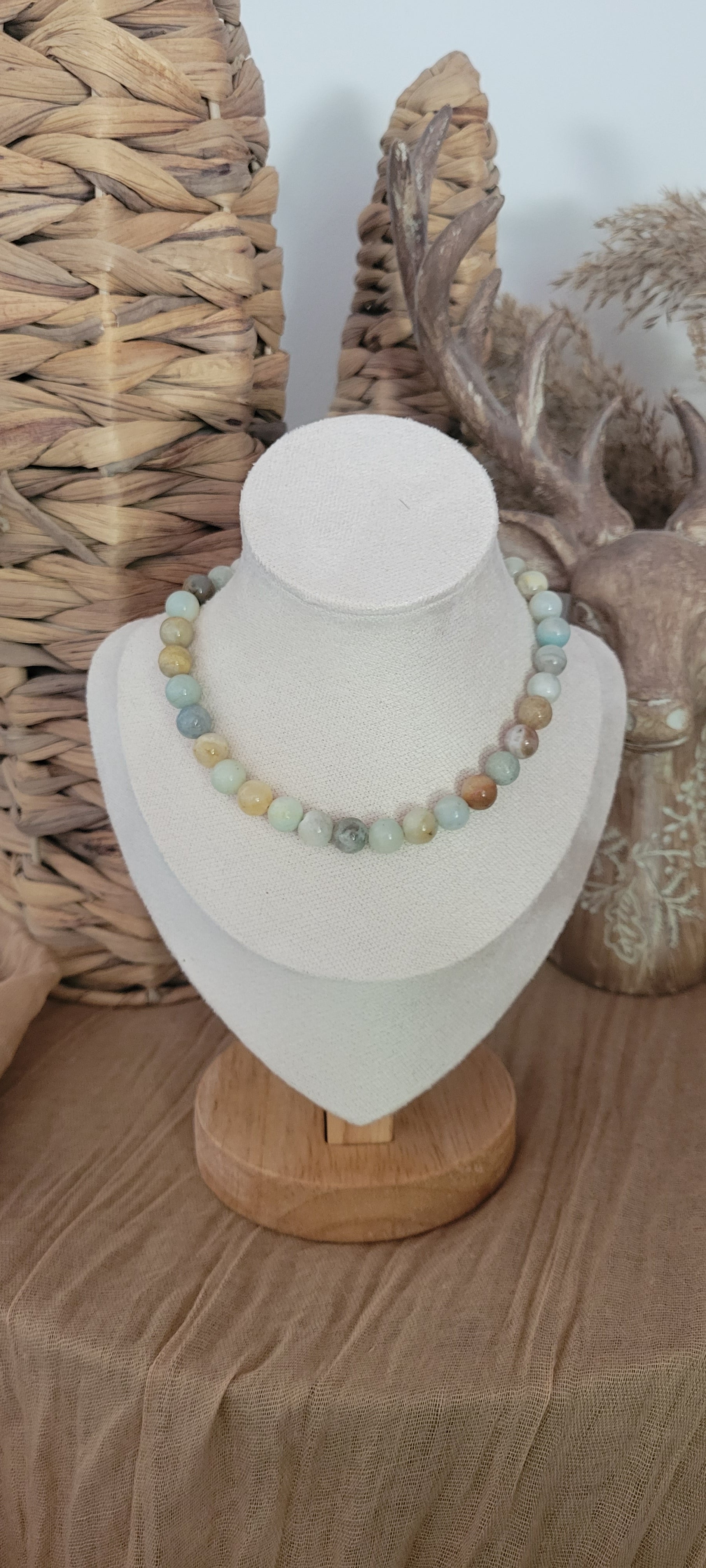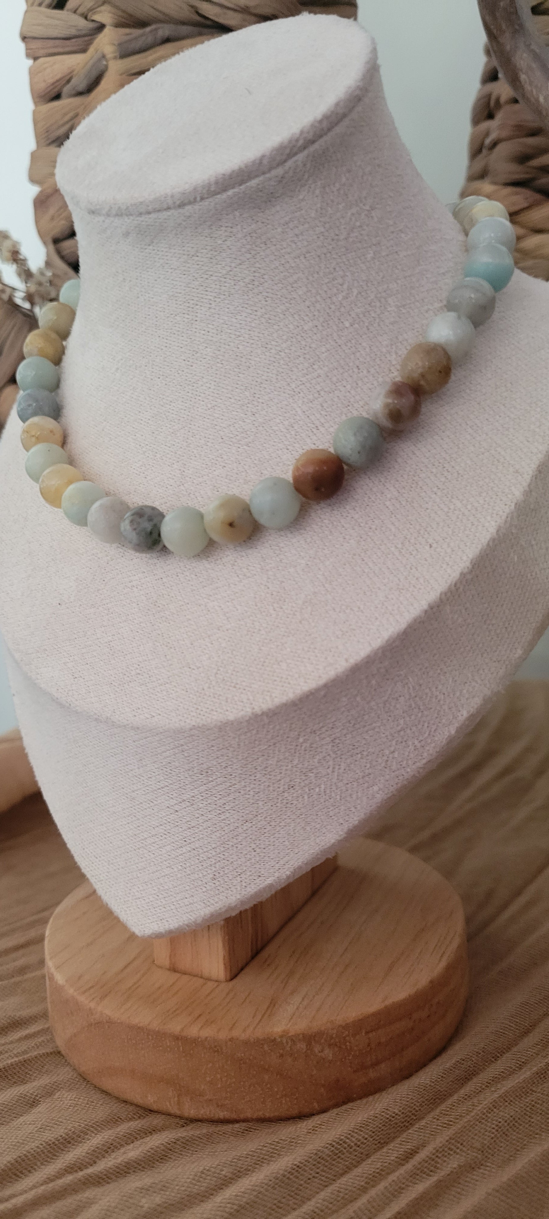 Plongez dans la douceur minérale d’Opaléa, un collier au charme naturel et apaisant. Composé de perles aux teintes pastel – jade tendre, beige sable, bleu brume et éclats de caramel – chaque perle raconte une histoire, sculptée par le temps et la Terre. Ce bijou incarne l’élégance discrète, l’équilibre entre lumière et matière. Il évoque les rivages lointains, les promenades à l’aube, et cette beauté brute que l’on retrouve dans la nature. Parfait pour sublimer une tenue bohème, minimaliste ou chic, Opaléa vous accompagne avec délicatesse au quotidien comme lors de vos moments précieux.