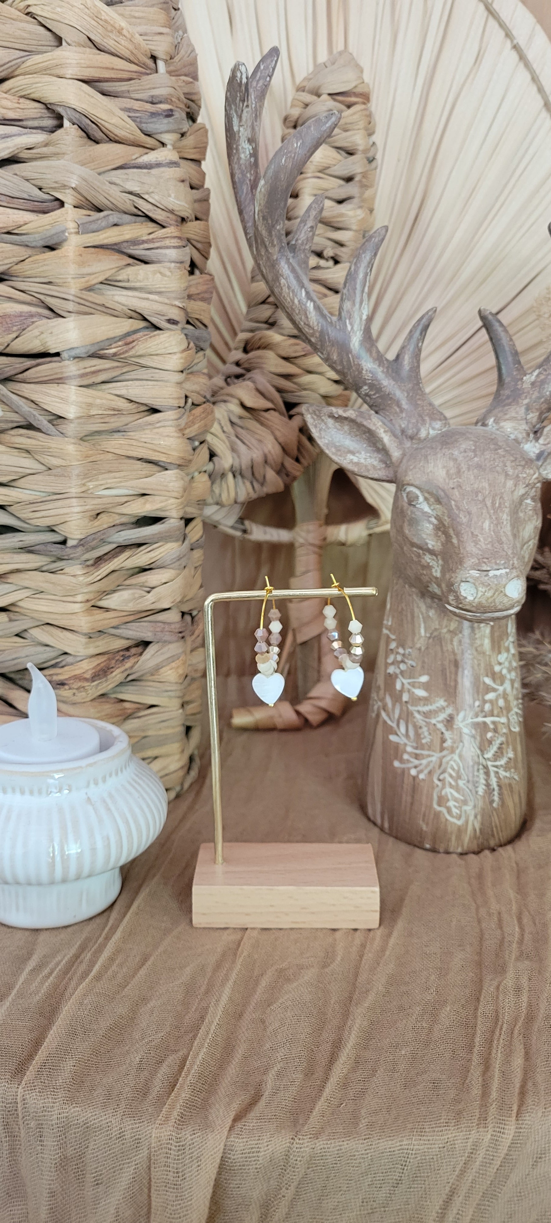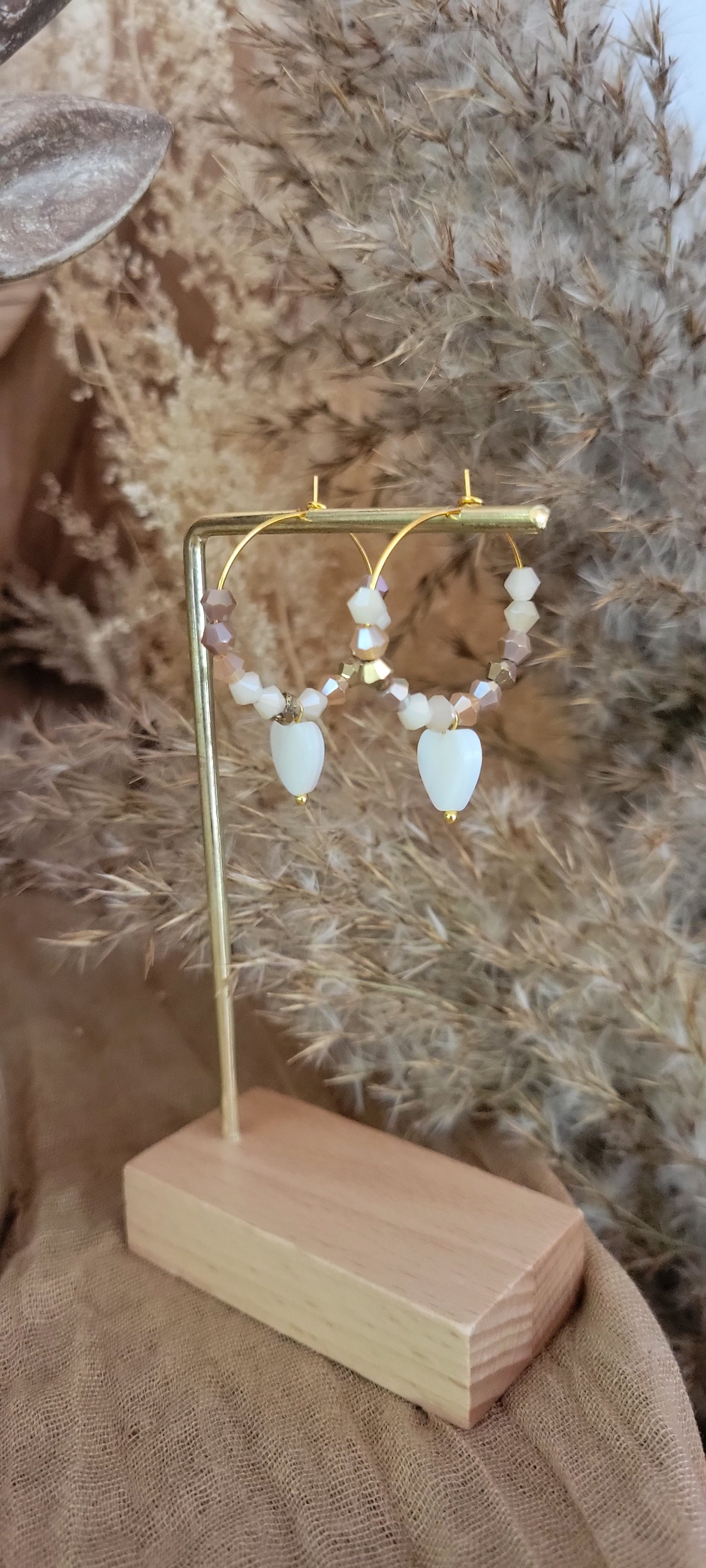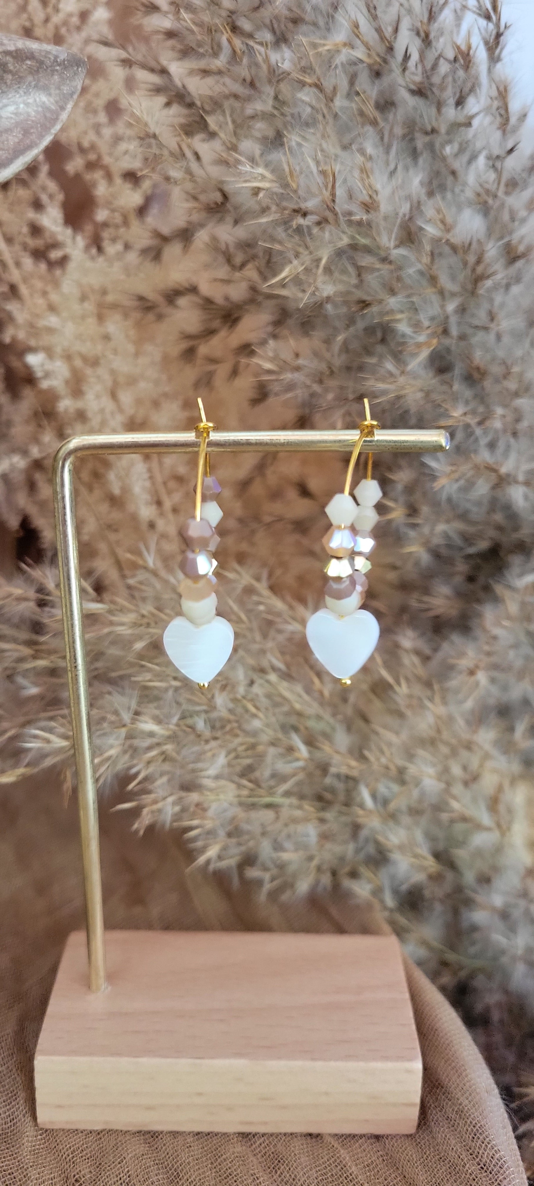 Oréliane c'est une caresse de lumière, une odeur à la douceur et à la féminité. Inspirées par la nature et les teintes nacrées du petit matin, ces boucles d'oreilles dévoilent une harmonie subtile de perles rosées champagne et cristallines, surmontées d'un cœur en nacre blanche, symbole d'élégance intemporelle. Légères et gracieuses, elles se portent comme un murmure sur la peau, parfaites pour sublimer une tenue bohème, romantique ou minimaliste.